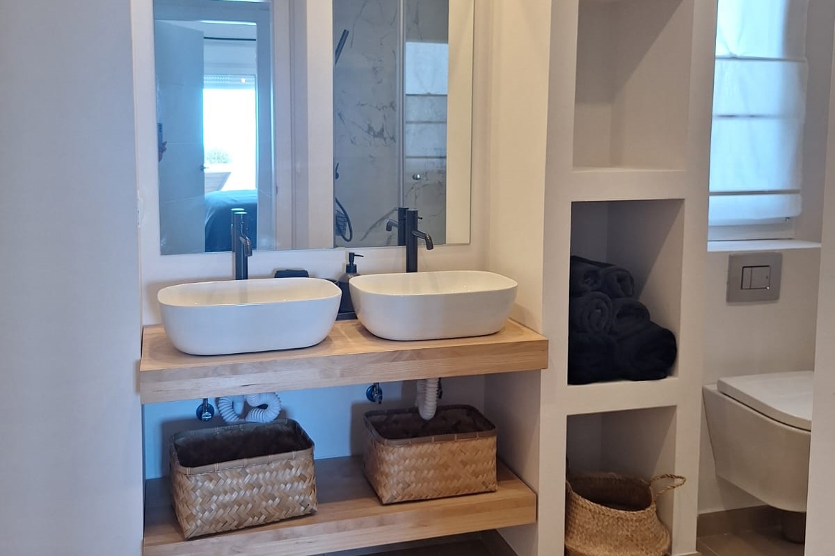The apartment boasts a spacious balcony that overlooks the sea. Inside, you'll find a fully equipped kitchen with modern appliances. Both the two bedrooms and the living room are equipped with air conditioning to ensure your comfort. Moreover, a complimentary parking space is provided right underneath the apartment. With the old town of Estepona merely a 10-minute walk away, you can easily explore its historic center, immerse yourself in its rich cultural heritage, and indulge in the charming streets, delightful cafes, and captivating sights it has to offer.
