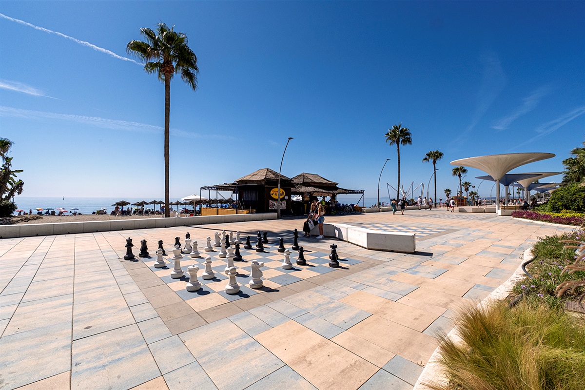 The apartment is nestled in a serene gated development, surrounded by a lovely garden and grants easy access to the main promenade, known as the Paseo Maritimo. Additionally, it is conveniently situated next to the Trocadero club (featuring a pool and beach club) and the Carrefour. Just a two-minute walk away, you'll find wide sandy beaches adorned with beach bars and restaurants, where you can relax on a sunbed and savor a refreshing cocktail.