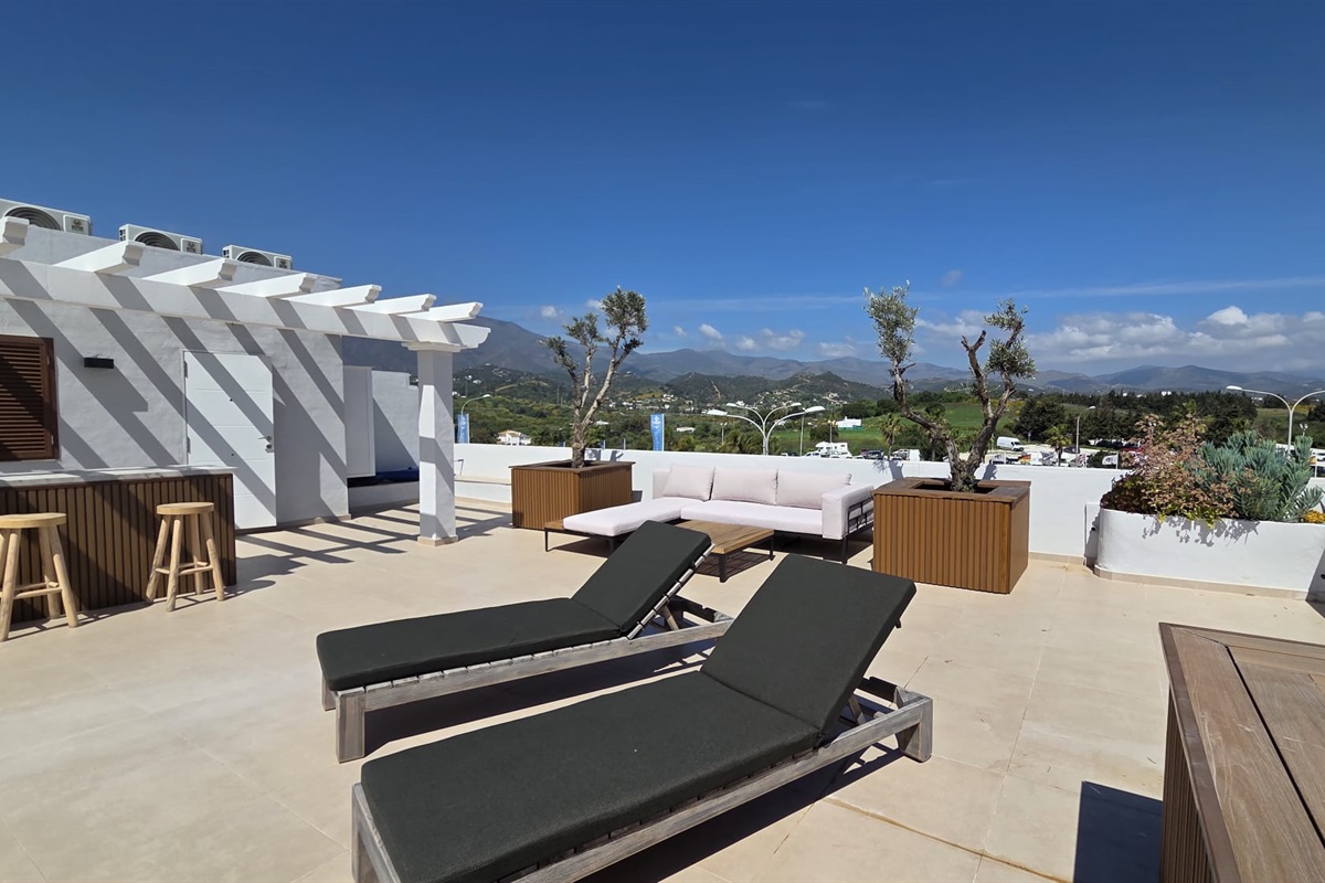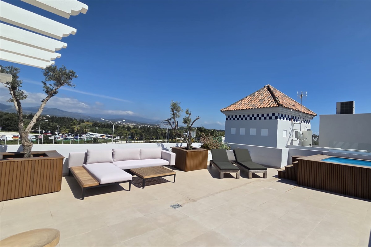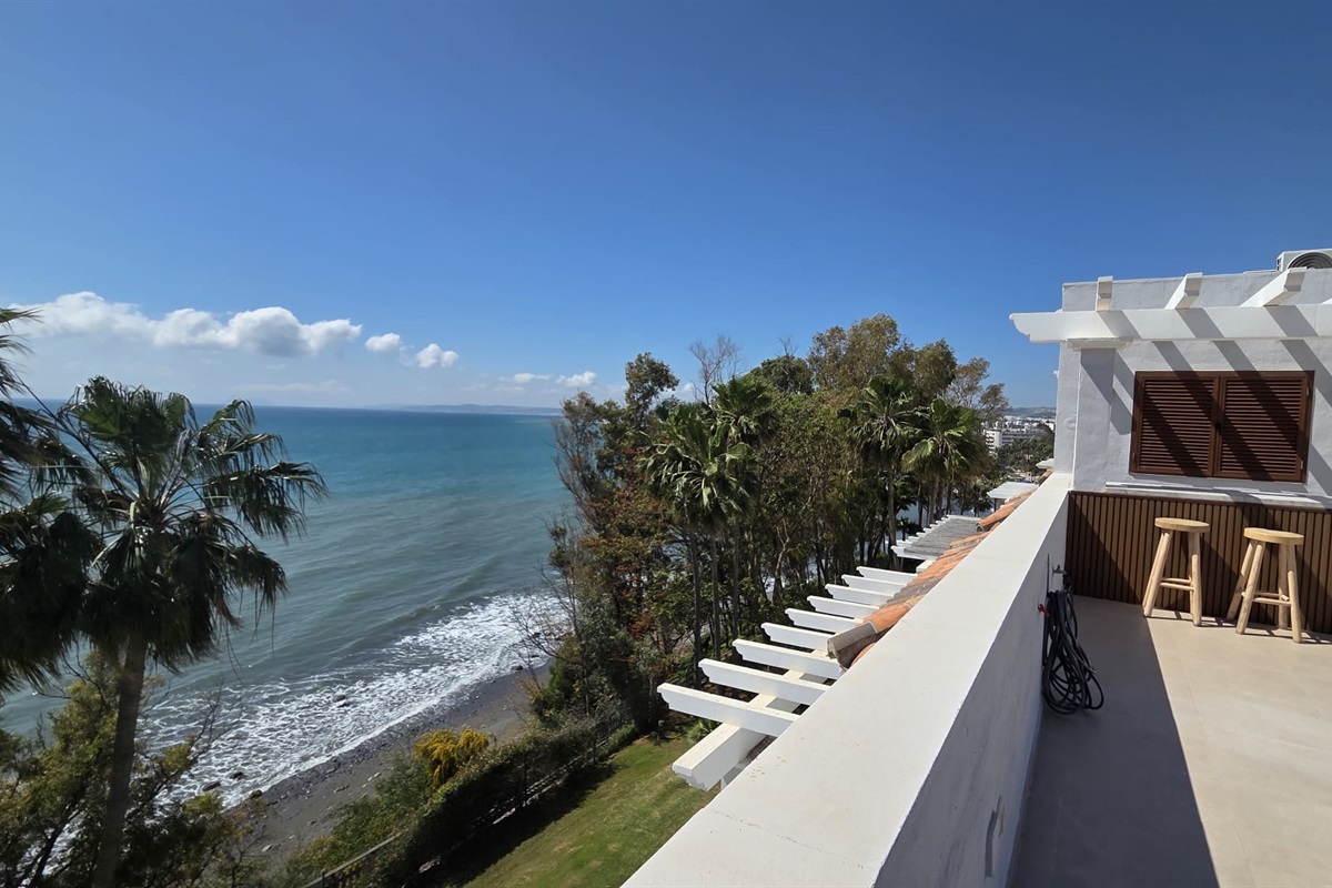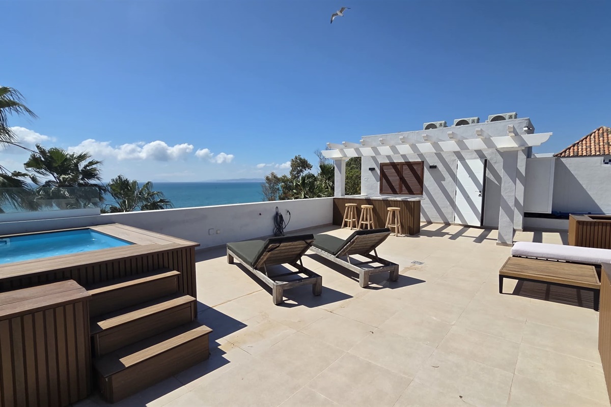 The apartment boasts a spacious balcony that overlooks the sea, complete with comfortable sunbeds. Inside, you'll find a fully equipped kitchen with modern appliances. Both the two bedrooms and the living room are equipped with air conditioning to ensure your comfort. Moreover, a complimentary parking space is provided right underneath the apartment. With the old town of Estepona merely a 10-minute walk away, you can easily explore its historic center, immerse yourself in its rich cultural heritage, and indulge in the charming streets, delightful cafes, and captivating sights it has to offer.