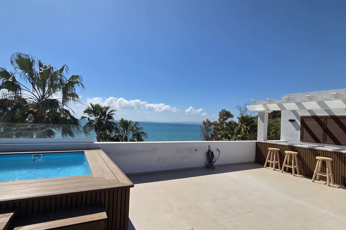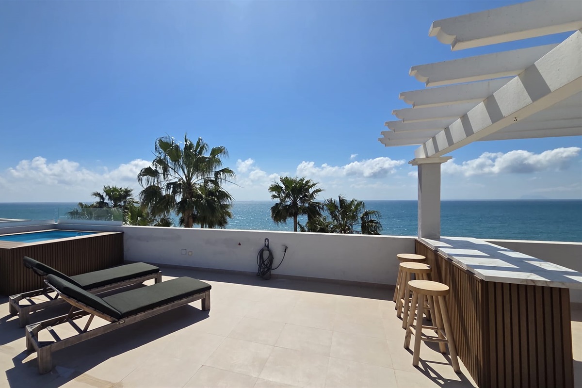 2 Bedrooms • 2 Bathrooms 2 Baths • Sleeps 4A beautifully renovated apartment awaits you, furnished with new furniture and situated directly at the seafront. It offers breathtaking views of Gibraltar and the North African coast. Located within walking distance of the charming old town of Estepona, which boasts an array of restaurants and bars to choose from, it's only a 10-minute stroll away on the boulevard.